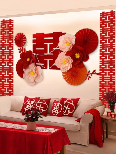 仕彩结婚沙发背景墙装饰套装女方婚房布置男方客厅婚庆用品吾家有